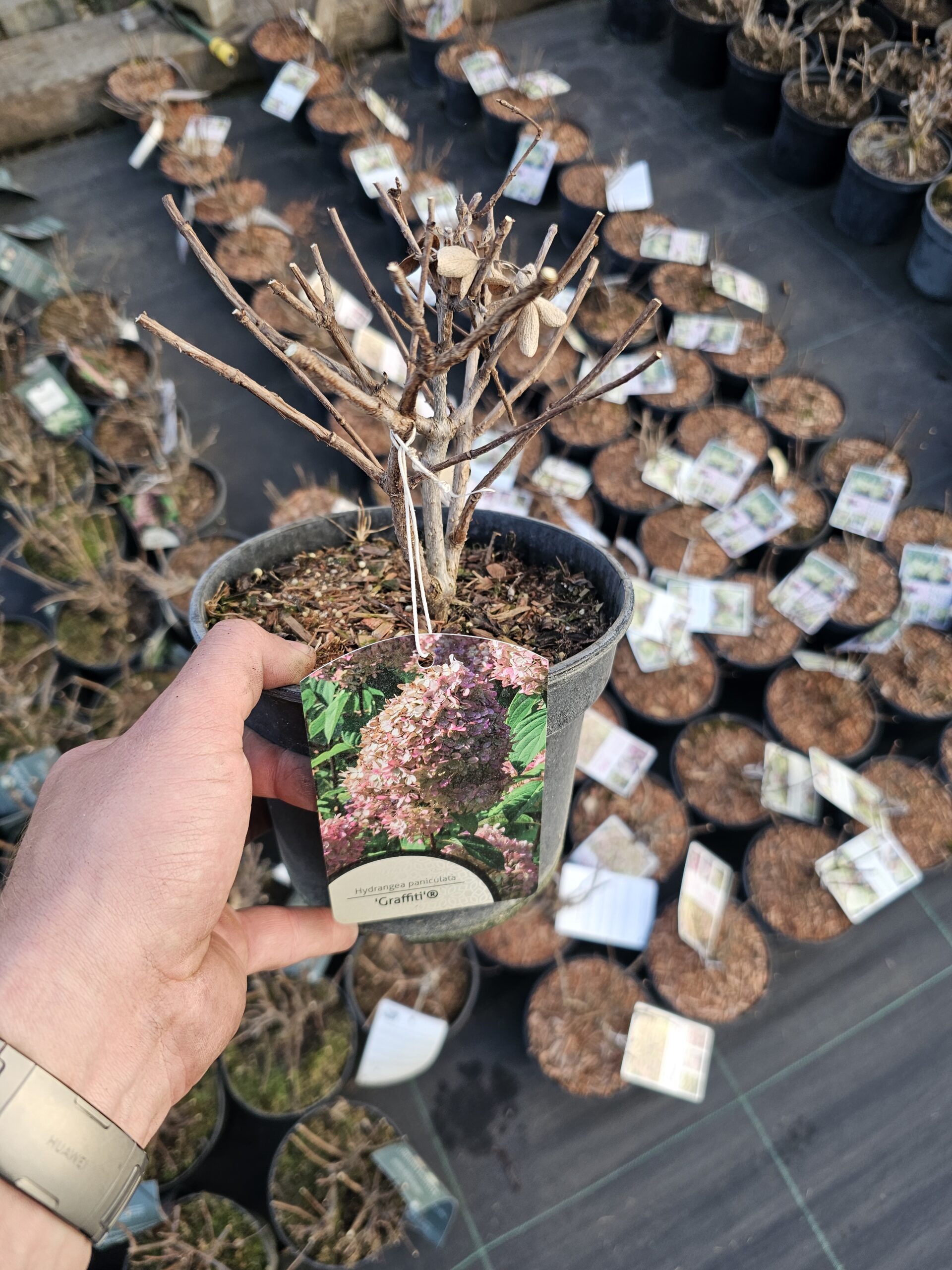 Hortensja bukietowa ‘Graffiti’ to stosunkowo nowa odmiana hortensji bukietowej, wyróżniająca się pięknymi, wielobarwnymi kwiatostanami oraz zwartym, kompaktowym pokrojem. Jest to krzew liściasty o umiarkowanym tempie wzrostu, który osiąga około 1–1,5 m wysokości i podobną szerokość.