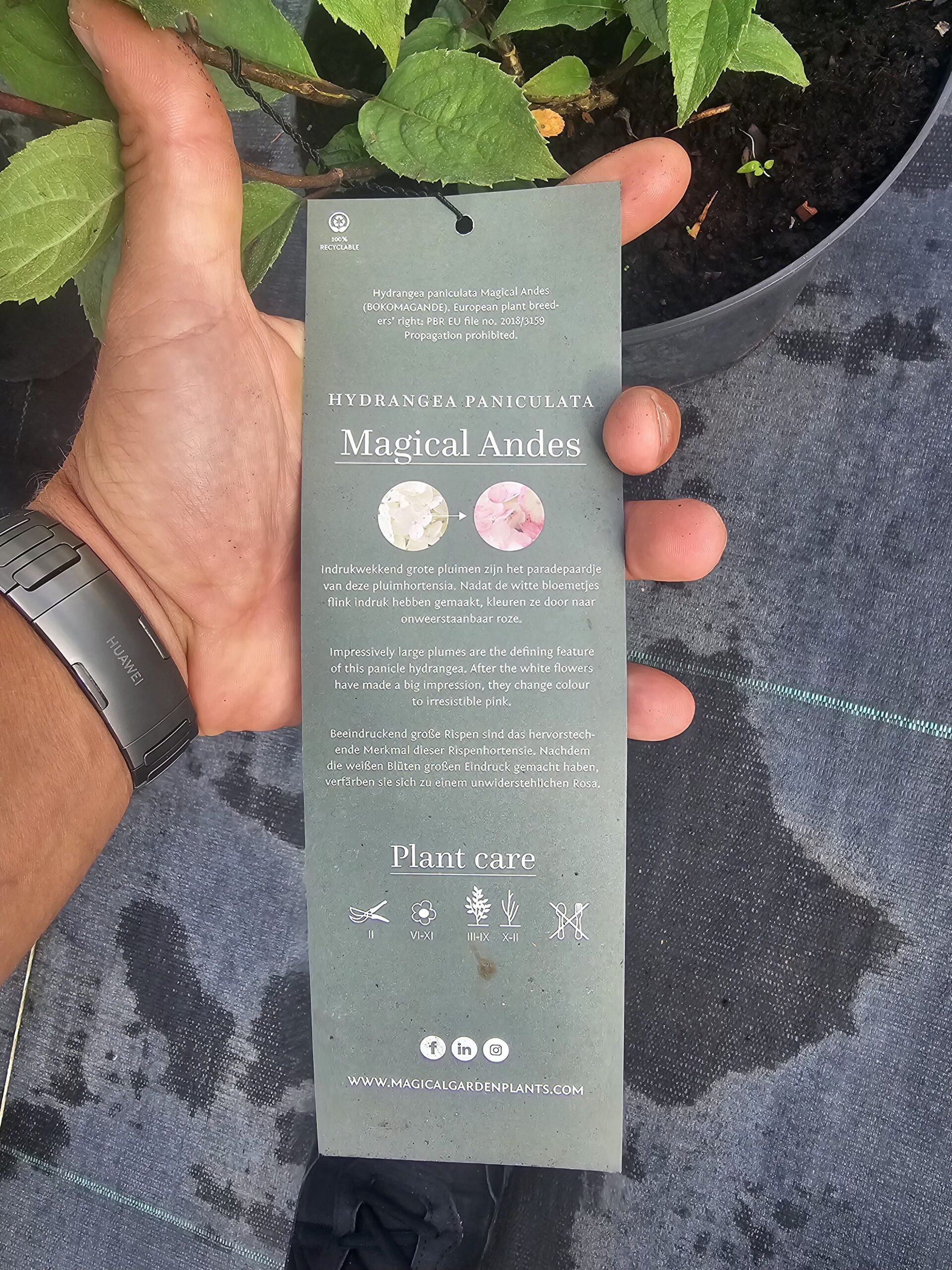 Hortensja Magical Andes (Hydrangea macrophylla ‘Magical Andes’) to wyjątkowa odmiana z serii Magical Four Seasons, słynąca z niezwykłej zmienności barw w trakcie sezonu. Jej kuliste kwiatostany przechodzą spektakularną metamorfozę – od intensywnie różowych lub niebieskich tonów, przez głębsze fiolety, aż po zjawiskowe, zielono-bordowe odcienie jesienią.