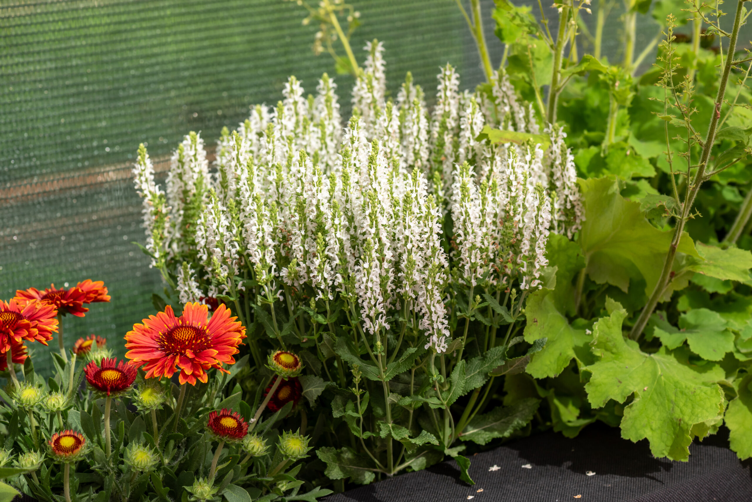 Szałwia Alba (Adrian) przepięknie komponuje się z jeżówkami, kocimiętką, trawami ozdobnymi i lawendami. Jej jasne kwiatostany rozświetlają rabatę i podkreślają kolor innych roślin.